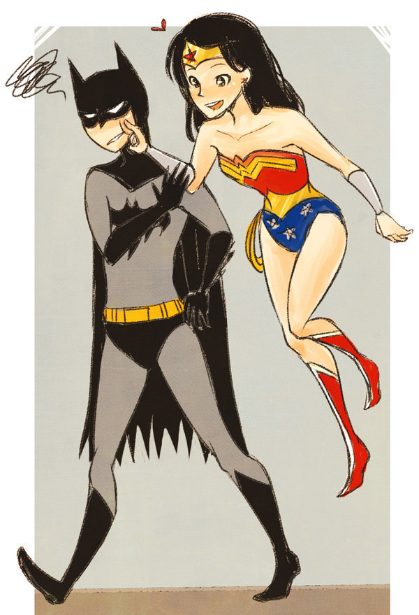 Mini Diana pinching Mini Bruce’s cheek by limegreenmuse. This is ridiculously cute. I love how bossy Mini Diana was in JLU.