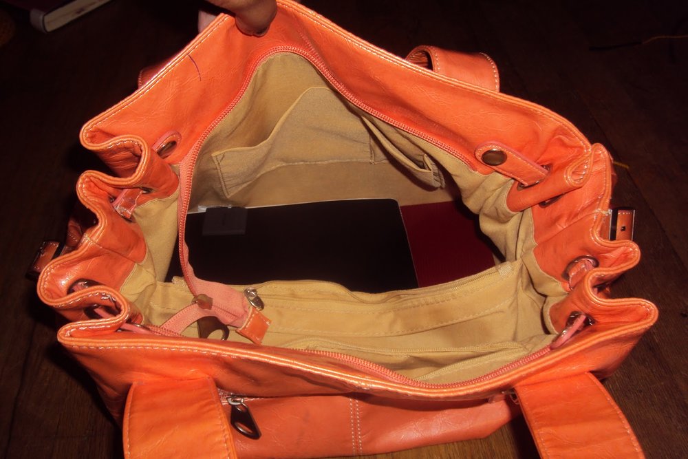 Training boxers on bicycles, Hermets with Gandolf sticks, and police officers pulling folks over near handbags, and gucci shirts. I even got this great purse for $5.50. Finally a purse that can actually hold everything I need to take with me without like I created it from a grocery tote. I mean this thing is HUGE, full of pockets. Large enough to hold my yarn, actual knitting needles and my laptop! Seriously, I may not even need a bookbag when I go back to school in the winter. Here are some pictures of my bag. I am totally in love with it. The pictures with orange are what the purse looks like, But I liked the pink so you get those pictures as well ha.