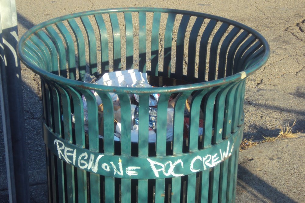 8.) Some really stupid gangs graffiti on a trashcan. You are super cool bro, you control a trash receptacle.