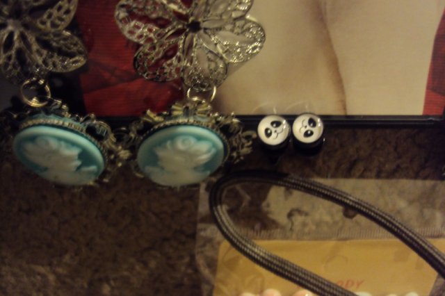 Silhoutte and Panda Earrings Glitter/Hot Topic