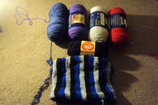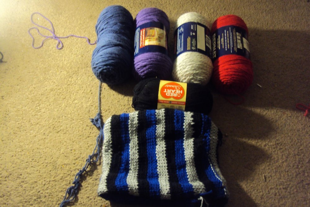 Yarn Haul: Greyblu, Purple, Grey and White, Red, Black w/glitter