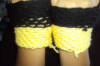 I was working the third shift all Easter weekend which wasn’t bad, I made ok tips, but it was slow, so during the down time, I made another pair of boxies. I was going to turn these into the secret project I was telling you about but didn’t have the right yarn so I decided to just make them into bumblebees with no bows. So here are some pictures of the finished product and before work in progress Wednesdays too!! As you can see by the formatting It makes a lot more sense right? Well… That’s because my dad found a laptop for me to use while I’m getting mine fixed, but If I have to tell the truth, I’m already falling in love with it!!