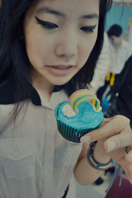 My friend made rainbow cupcakes 🙂 It was too cute & sweet to eat D: ❤
