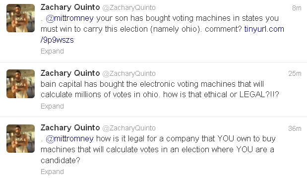 . @mittromney your son has bought voting machines in states you must win to carry this election (namely ohio). comment? http://tinyurl.com/9p9wszs