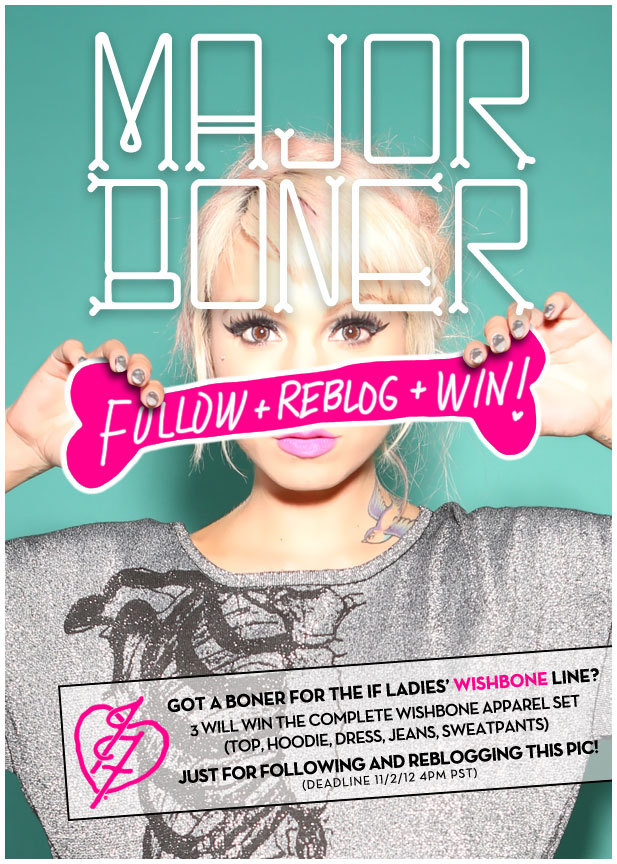 MAJOR BONER Contest! 3 IF Ladies fans will win ENTIRE Wishbone apparel set! Follow + Reblog + Win! (Boing!)