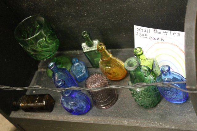 I really wanted to purchase the sewing machine, but the lady on duty couldn’t tell me if it worked or not, and I was not about to spend 50 bucks on something that might not even work, I don’t care how vintage it is. I really wanted those multi colored bottles, but they were too dirty to be of any real use to me. *le sigh* the issues with thrifting.