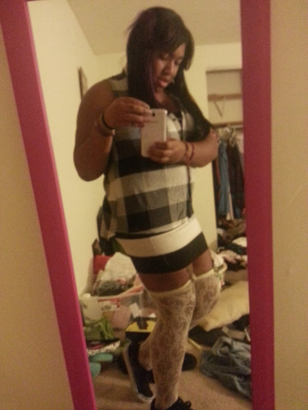 Top: Rue 21 (Teardrop backless)/Miniskirt: Forever 21/ Thigh Highs: Nylonjournal.com