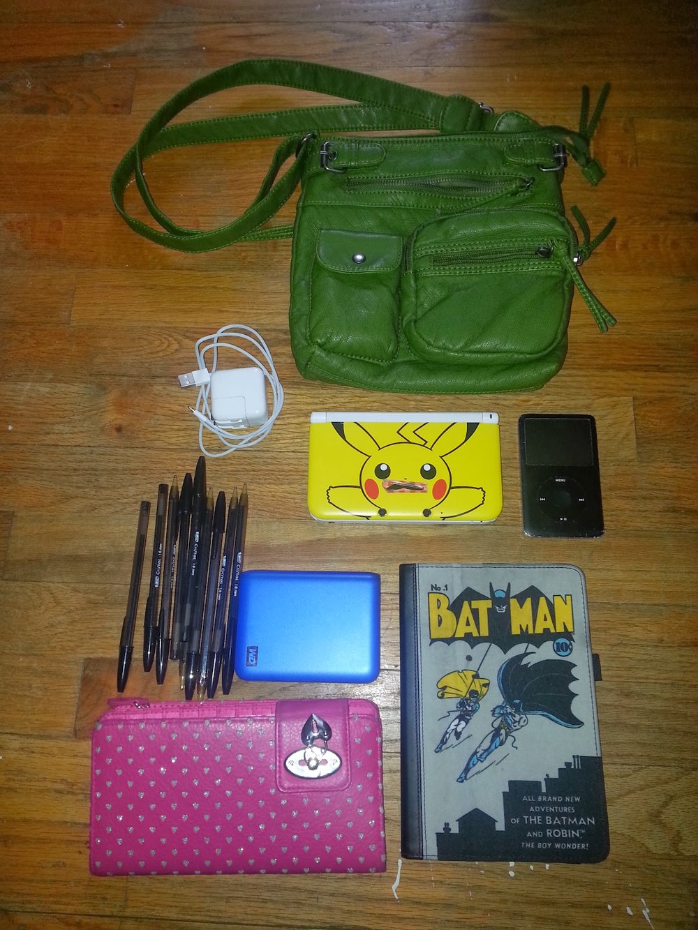 Usually People split this up into : Knitting Bag/ Makeup Bag things of that nature, but when it comes to my purse, I honestly am not organized enough for that. If it’s big enough for a ball of yarn, then it’s a knitting bag. As long as it fits then it comes with! A few days ago, I picked up this little green number at Meijers! I’ve really been into cross body’s lately. I think it’s because I take my Mini with me, So as long as the Mini fits, I don’t really need the bigger bags that I used to take my Laptops in. Unfortunately, My camera, doesn’t fit as comfortably as I would wish so I might have to upgrade again when I get paid again…(Sadness)