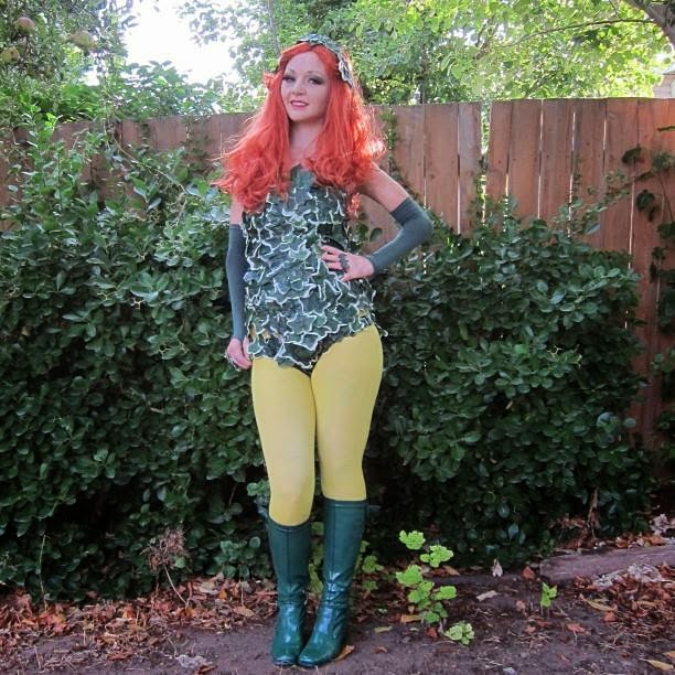 I made this costume out of clothing I found in my closet and ivy leaves I found at a craft store. I dyed the clothing underneath the leaves a dark green, and then glued/sewed on the leaves. The boots were spray painted to match the green. The tights were from target and the wig was ordered from amazon. This costume took me about 2 months to complete and it was one of my more “thrown together” costumes.