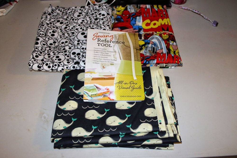 They had like four women cutting fabric and there was still enough of a line, that I had to pull a ticket number and wait with the rest of the peanut gallery. When it was finally my time, I sauntered up there with all of my bolts of fabric and pretty much got 3 and 1/2 yards of everything, there were a few that didn’t cut it, and I just took the rest of the bolt. I also picked up a sewing book, called the Essential Sewing Reference Guide. I’m hoping, it will help me not pull my hair out when I’m trying to sew later.