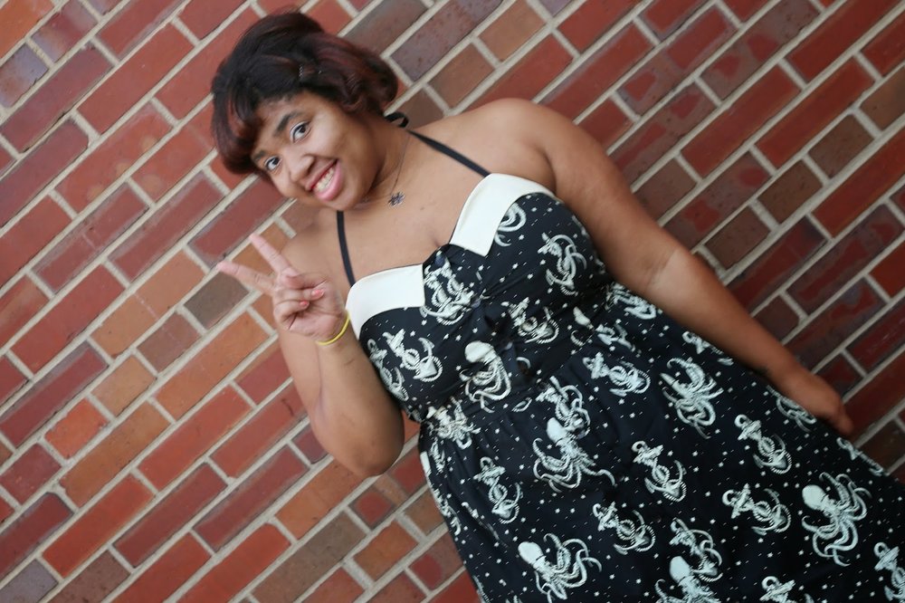 My younger sister purchased a selfie stick, which she took to the show and there are dozens of Group Selfie shots (Doesn’t that defeat the purpose of a selfie?) that will pepper my Instagram and Twitter timelines soon. I wore a dress I picked up from Sourpuss Clothing (Thanks @daintysquid for having it in your side bar, I never would have found them otherwise!) After the Musical, We headed to Bdubs, and gorged ourselves Traditional Wings, and ooey gooey Cheese Wedges! I absolutely adore my new dress! I instantly fell in love with the octopi and anchors! It’s the perfect mix of 50’s style and nautical design.