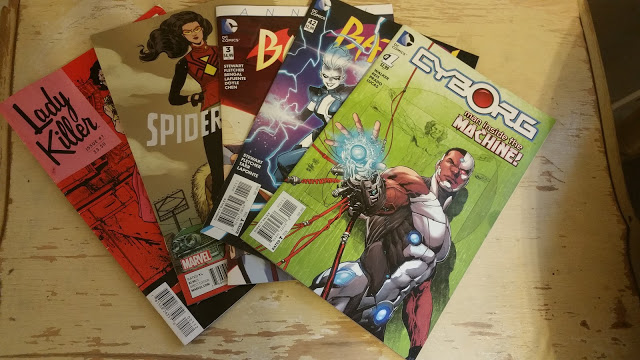 Here’s what I’ve been reading this week! Cyborg #1, Lady Killer #1, Spider-Woman #9, Batgirl #3 annual and Batgirl #42. Batgirl is getting a little weird, I don’t know how I feel about James being Batman, or that his main goal is to hunt all of the people that once use to be Batman’s allies. I do love that Barb’s Ex roomie is getting married and that Frankie is helping more with missions and that Q is back and working with Luke Fox! I thought Livewire was pretty cool as well. I felt like there wasn’t enough story in Cyborg to really delve into whether or not I liked it, I know I will be picking up the next issue. Spider-Woman just wrapped up the story of the lost wives and how now they’re going to be a team and solving mysteries together, reminds me of Scooby-Doo, or Nancy Drew, it has an air of farce to it. I’m still reading Lady Killer #1, so I don’t have much to say about it, however, it was recommended by Arcadian Staff, because I like strong female characters, so hopefully it will be good.