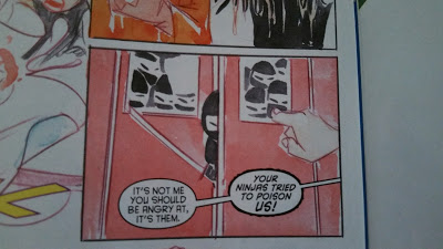 Oracle and her father, have a reservation at a restaurant for Father’s Day. Even though she’s made the reservation several months earlier, she is forced to share a table with Talia and her father. Of course, hilarity ensues. After, spying a cook deliver their food that looks incredibly like a ninja in disguise, Barbara pulls the table cloth before they could eat the “poisoned noodles.” Upset that she and her father are now covered in noodles, Talia Demands to know why, In which Barbara points to the kitchen doors that are now filled with Black-clad ninjas. Talia calmly explains that her ninjas wear red or reddish Brown and that those ninja’s in the kitchen are completely different and a battle breaks out.