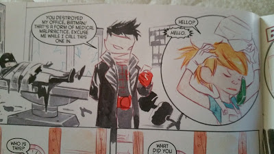 . This is My very FAVORITE CHAPTER. It makes me laugh just thinking about it, and I’m giggling as I write this. Jenna is the Carpenter, she has the ability to build the villains anything they may need. Now, its Labor Day and she has decided to take an entire day off to relax/ build her pup Socket a dog house. Of course, the one day she takes off, literally every villain in Batman’s Gallery Decides that they need some work done. Everyone from Catwoman, Harley and the Joker, The Penguin and Two Face Calls before she just stops answering and leaves an automated message, telling these chumps to call her tomorrow, and then Socket unplugs the phone from the wall. Thinking that they are in the clear, she then begins to put together the foundation for Socket’s house. Unfortunately, then her cell phone rings, and Darkseid’s lacky is calling her long distance to see if she can build an air conditioner of sorts to make the planet less humid, when Darkseid zaps him for not “calling Collect”. Darkseid’s lackey called her ya’ll, I got tears rolling down my face. That is straight comedy. After finally not having any calls, she realized that Batman has locked everyone away and that now she is out of work, So Batman brings her to the cave, to do some work for him, since Damian and His dinosaur has destroyed it.