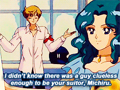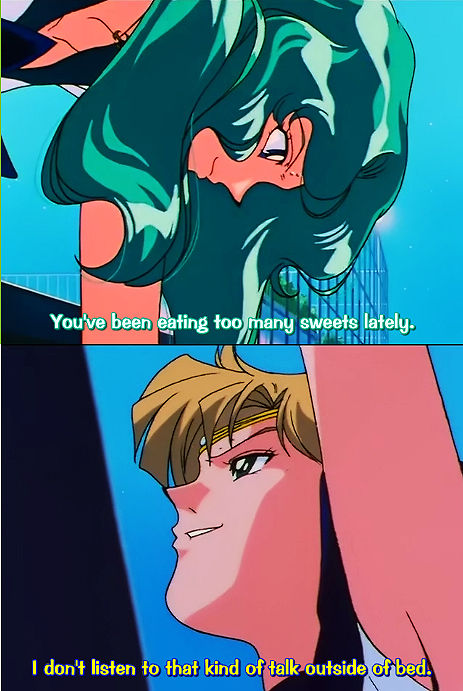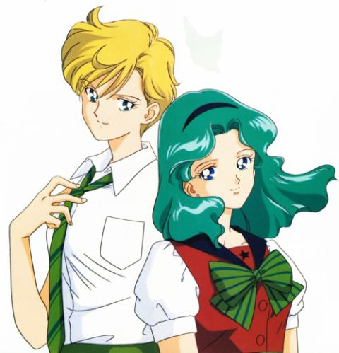 Haruka + Michiru: Haruka is my favorite Sailor Scout and she embodies qualities that I wished I possessed. When I was a child I thought she was the bees knees. She is an amazing character and she grounds Michiru needs it. Michiru can be extremely focused, sometimes she forgets to eat! I think their playful relationship can be serious when needs be and I love that together they care for Hotaru.
