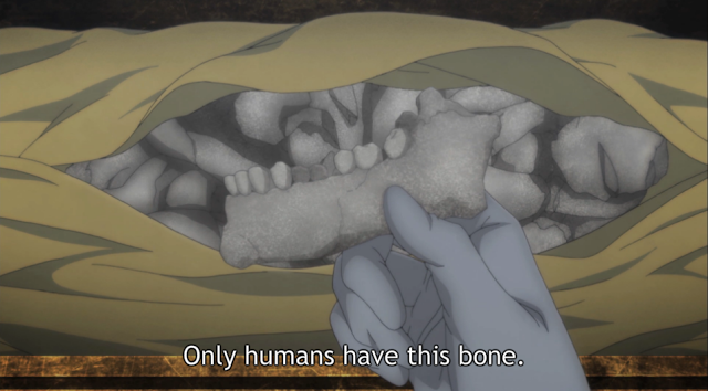 The Magical Girl-esque sequence that occurs when she discovers a new set of bones. Any bone is worth its weight in gold to her. It’s my favorite part of each episode. It is just an incredibly beautiful piece of animation, seeing the bones of previous animals and even dinosaurs walk among her, as she begings to solve the mystery. Plus , her catchphrase: Shall we solve the mystery?” reminds me of Professor Layton which only endears me to Sakurako even more.