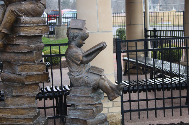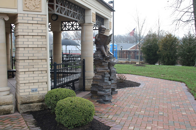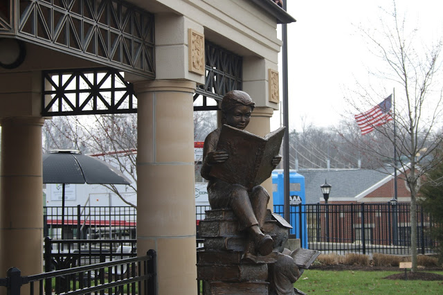 After traipsing through the graveyard which was slightly wet, because it had rained the night before. I didn’t want to people to think I was too weird and this graveyard wasn’t really tucked away. It was at the corner of a very busy street, and I actually noticed quite a few cars slowing down as they passed me, probably curious about what I was doing. I even had a few honk. When I finally left the graveyard and was heading home, I noticed this beautiful gazebo like structure to my right, with a statue of a little girl reading, so of course I pulled over! It’s called Library Park, and it’s connected to Lebanon Library. You can even use the Library’s wifi in the park! Aren’t the Statues lovely?!