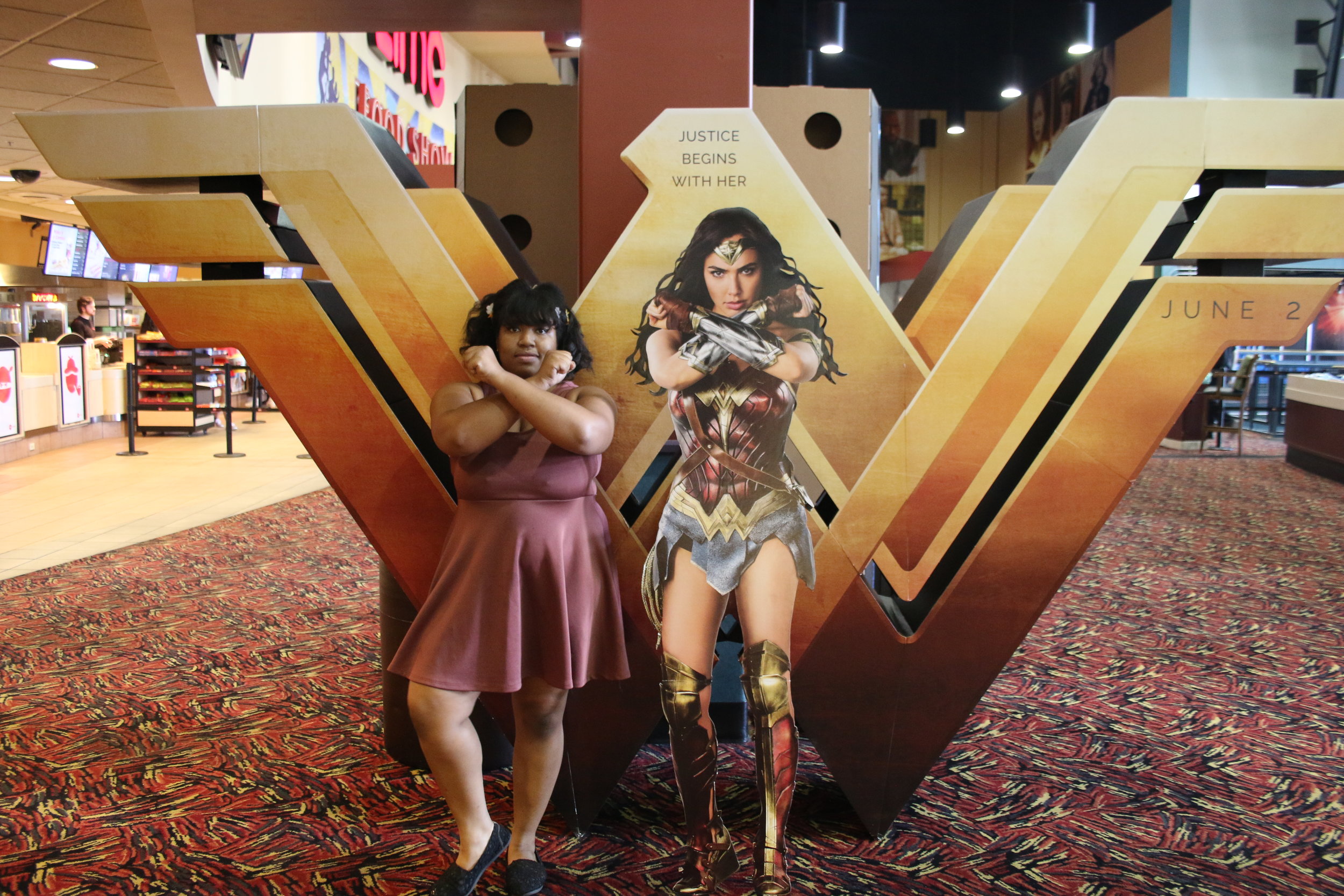 They had a ginormous display for Wonder Woman that I just couldn’t pass up. Whenever I go to the movies, I always take pictures with the displays, it is one of my favorite things to do. I’m wearing a zip up skater dress from Rue 21. I originally bought it for my Eevee costume, and it fits so perfectly that it has just made it into my dress collection. Lace loafers from payless, and my letter from Hogwarts bag is from Hot Topic.