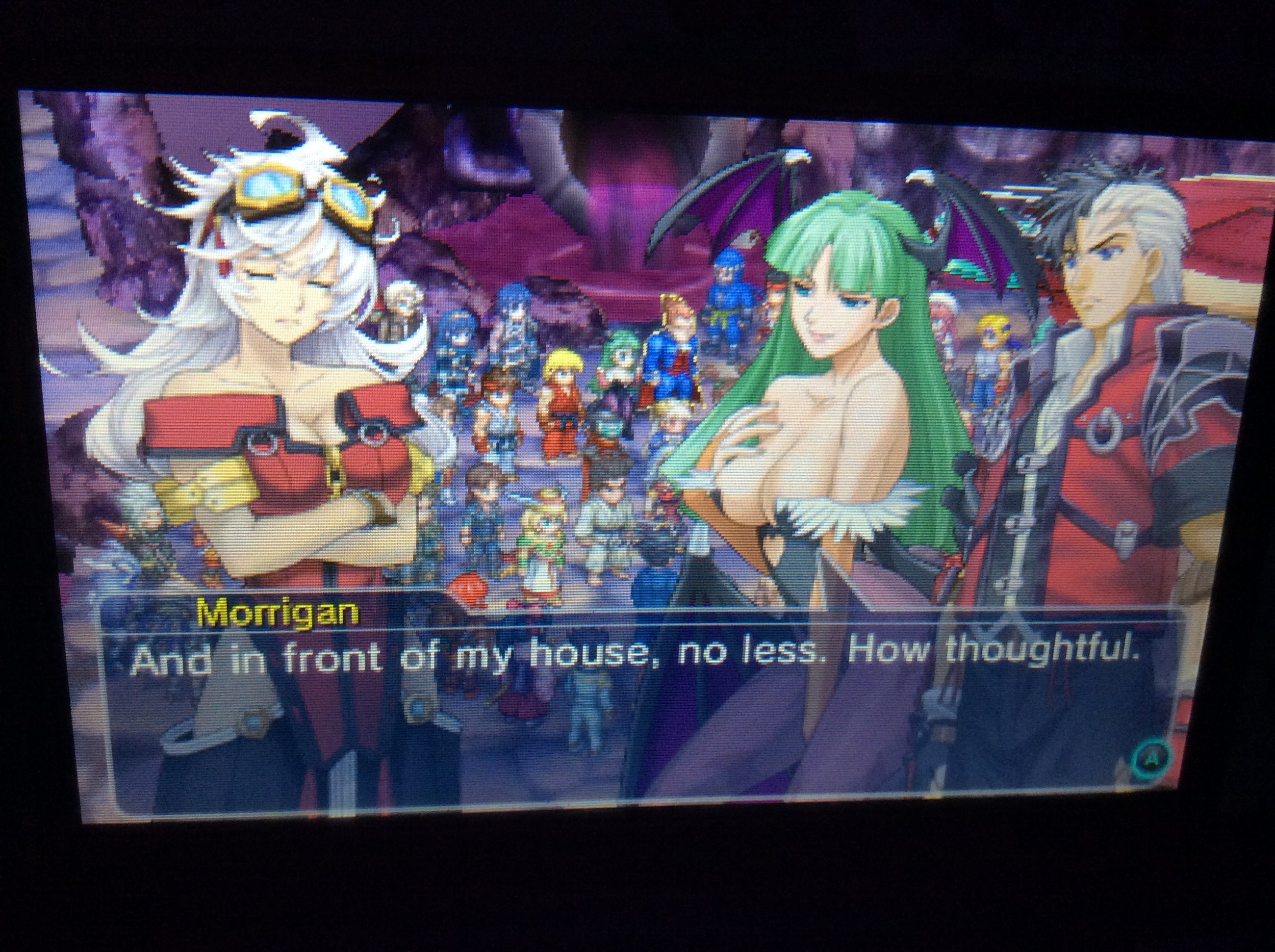 I found Project X Zone 2, now if this seems familiar it’s because I picked it up before memorial day last year, and I was playing pretty regularly until I got to the 2nd to last level and got stuck. Yep, you read that right, I made it all the way to practically the end of the game and stopped because I was so frustrated my vision was swimming. I had tried to defeat the last couple levels several times after the first time I stopped but it just was not working for me, last weekend though, I didn’t have anywhere to go and I decided to curl up with a Sleeping Alex, Momo, and Kahn, a cup of kool-aid and try to beat it.
