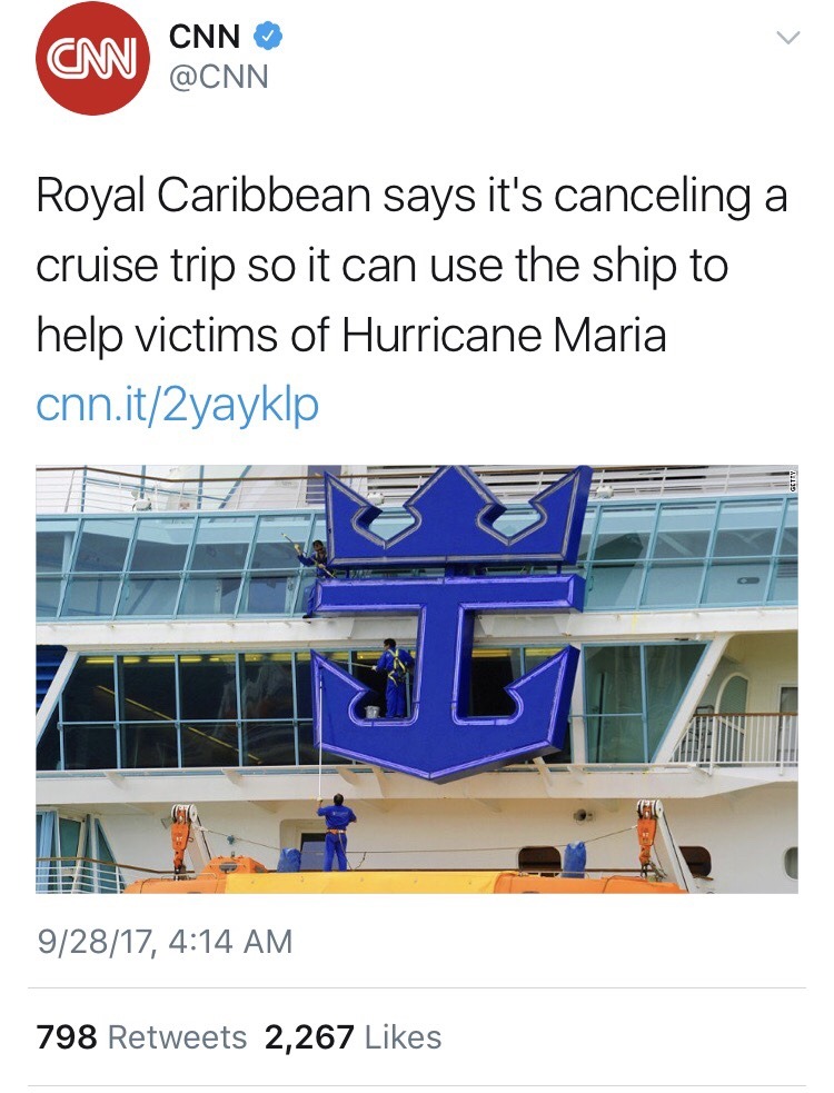 you know America is going thru some shit when a damn cruise ship company offers more help than the president
