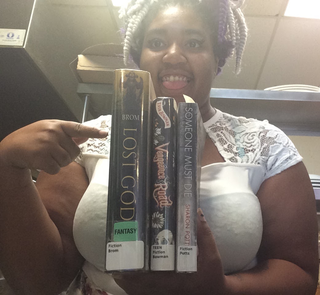 – This month I picked up actual physical books from the library. I’ve been on an ebook kick lately, so it was nice to be able to hold the books in my hands. I picked up Vengeance Road by Erin Bowman, Someone Must Die by Sharon Potts and Lost Gods by BROM. I’m currently reading Brom. I dropped my Ipad mini a couple of weeks ago and shattered the screen. At first, it worked perfectly fine, but now it is starting to press apps all on its own, and it makes it difficult to read and use. So it definitely slowed down my reading for the month of September.