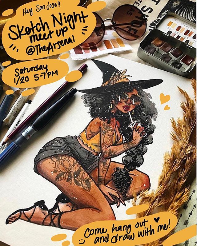 Come hang out and draw with me this Saturday at @thearsenalsj from 5-7pm!! I’ve always wanted to host a sketch night and meet some of you guys, so stop by if you’re in the bay!