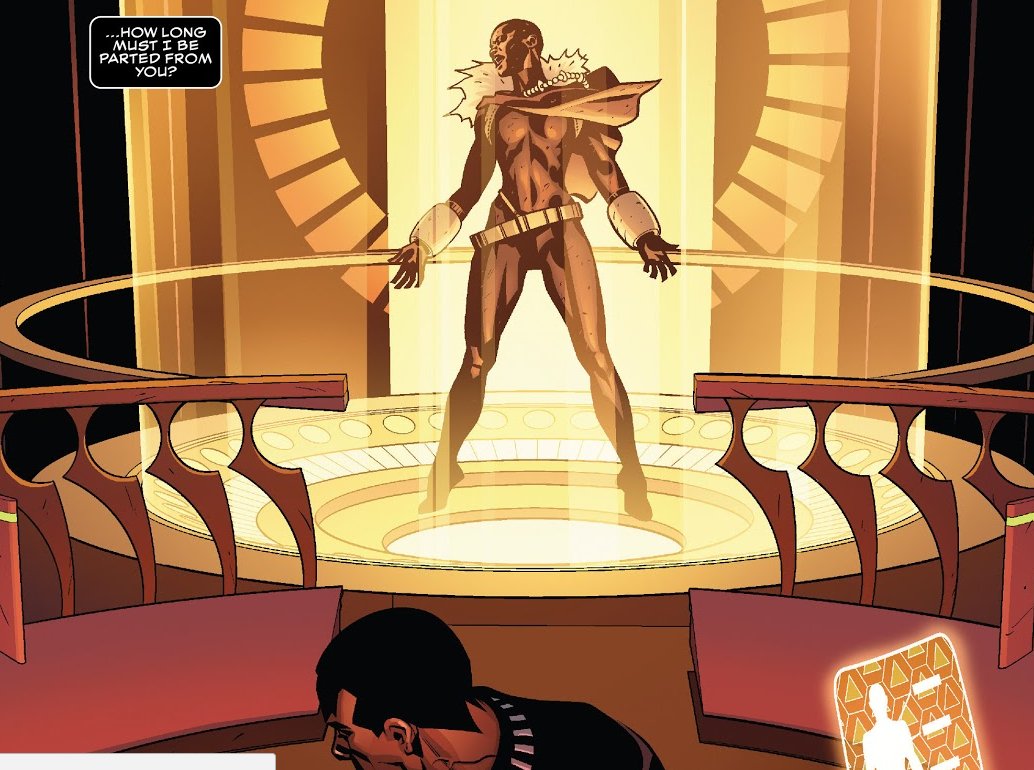 While T’Challa is comatose after refusing the Cabal’s invitation and being attacked by Doom and the rest of the members, Ororo nominated Shuri to take the Black Panther Mantle, but Bast rejects her over her jealousy of her brother’s position and her “arrogance” in the Gods presence. She takes the costume anyway in order to defeat Doom and save her brother. Her prowess and victory impressed Bast, and she was later imbued with the powers of the Panthers before.