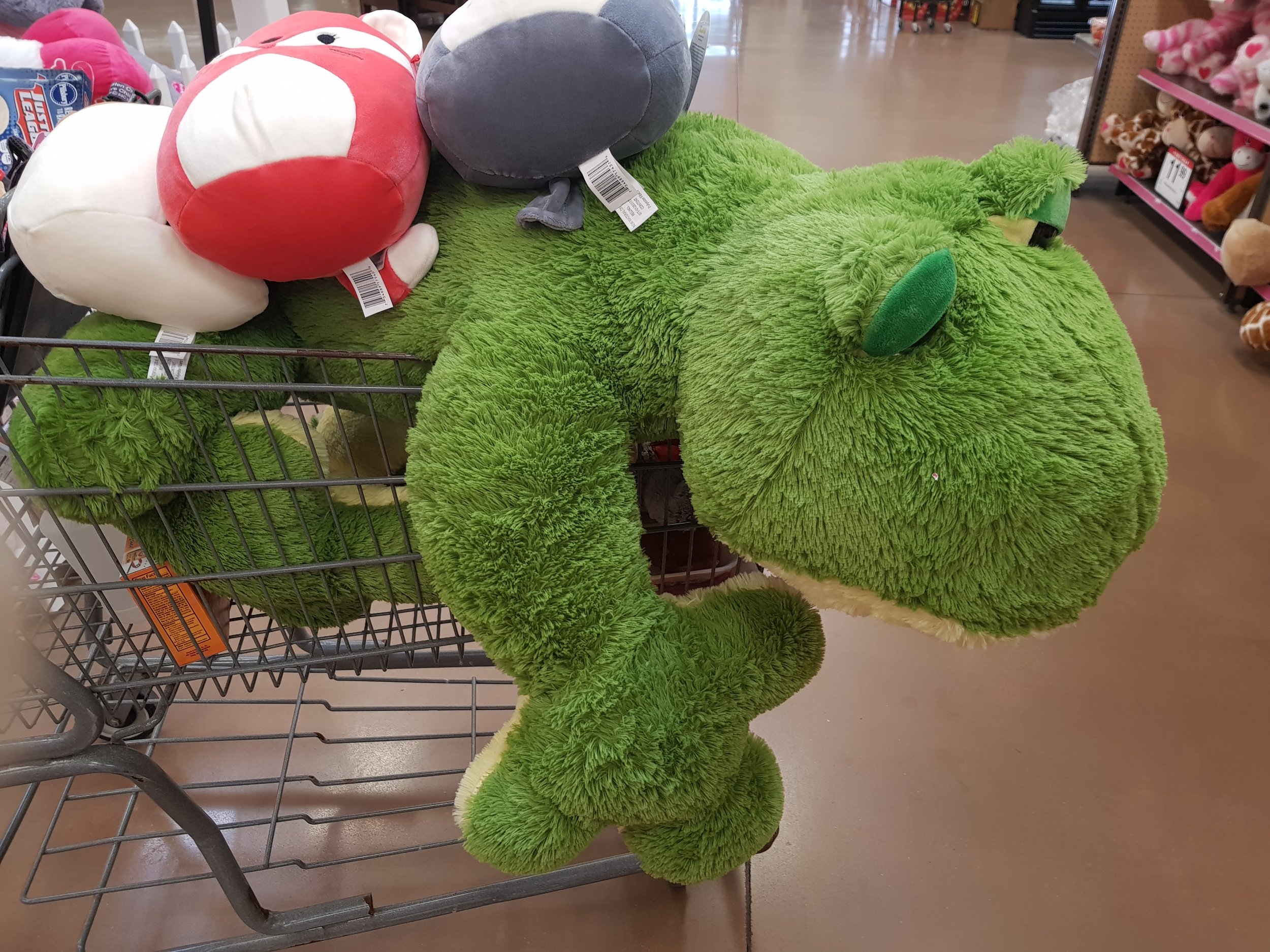 For Valentines Day, Boy Wonder got me a body sized frog. It is as tall as I am, and I drag it around the house. If I’m gaming on the couch, I’m laying on it. If I’m lounging in my chair and watching a stream, it’s there, and if I’m going to bed, I lay it over the two pillows on my side of the bed and I sleep on him. He doesn’t have a name yet, but he’s so soft!
