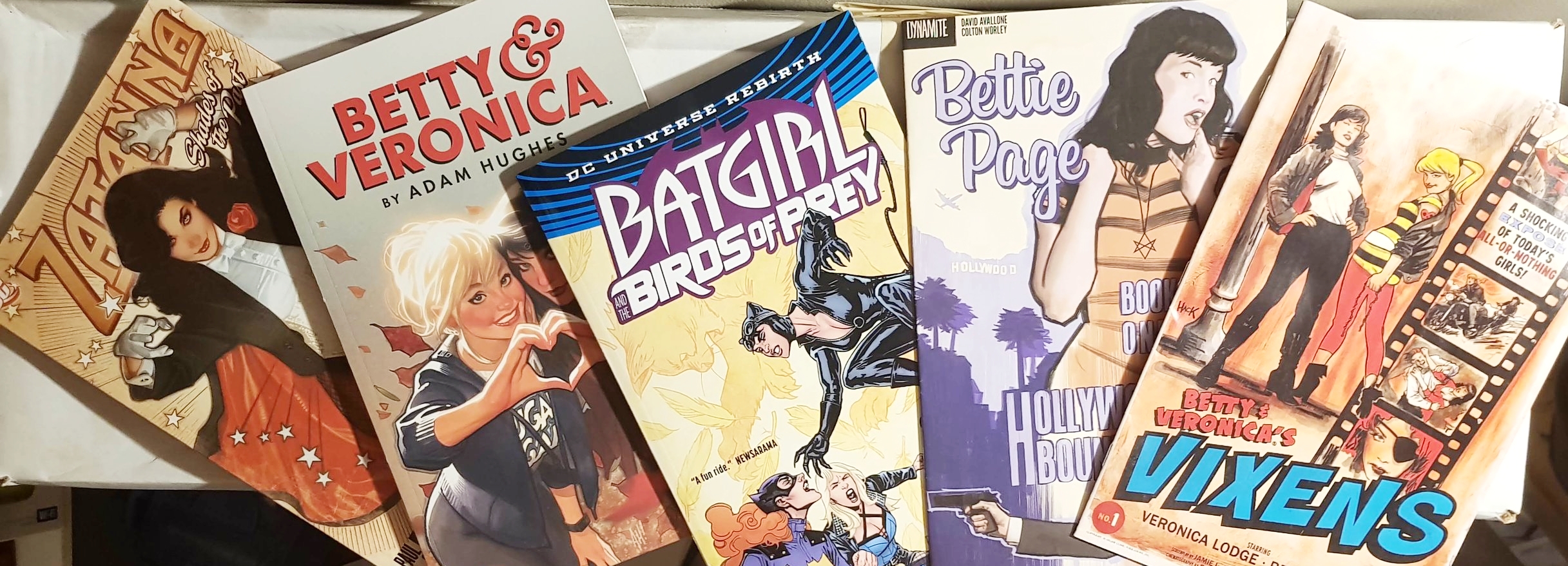 The First place we stopped was Comics 2 Games, which was nice, however, I didn’t realize they don’t do returns, so now I’m stuck with a graphic novel, I don’t need. *Anyone wanna take it off my hands?* I bought Zatanna Shades of the Past by Dini and Chiang, because you can never have too much Zatanna, she really doesn’t get enough love. I got Betty and Veronica by Adam Hughes, because his art is absolutely gorgeous and I couldn’t pass up the opportunity to own some. I also picked up Betty and Veronica’s Vixens by Rotante, and Betty Page by Avallone which I had been looking forward to for a while.