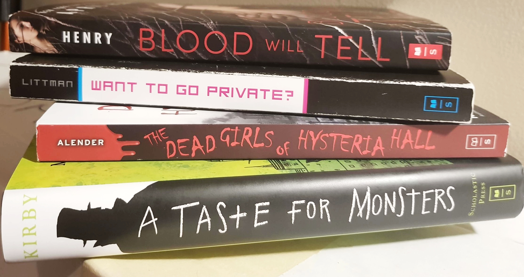 The next place we headed off to was Half Price Books, because they were having a 20% off sale, but I was proud of myself and didn’t go too crazy. I picked up a few dvds: Hotel Transylvania, Entrapment, The Phantom Of the Opera and Spectre. In Novels, I picked up Blood Will Tell by April Henry, Want To Go Private by Sarah Littman, The Dead Girls of Hysteria Hall by Katie Alender, who also wrote, Marie Antoinette, Serial Killer, which I talked about in the last book haul, and A Taste For Monsters by Matthew Kirby.