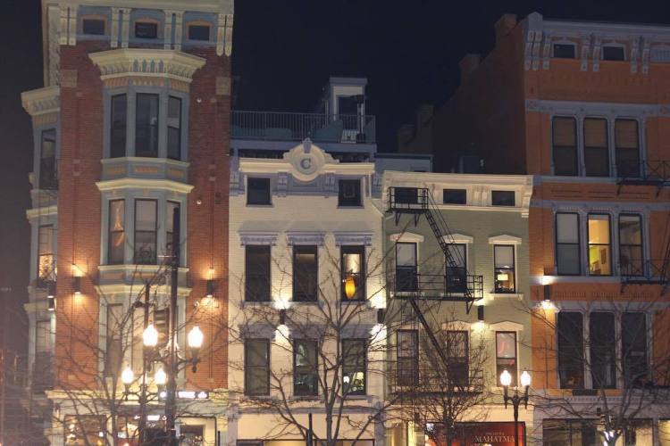One of my favorite streetscapes, I was wandering around OTR at night and the lights lit the building so pretty I had to take pictures! #checkmatephoto #cincinnati #otr #ohio #digital #canon70D #nightime #nighttimephotos