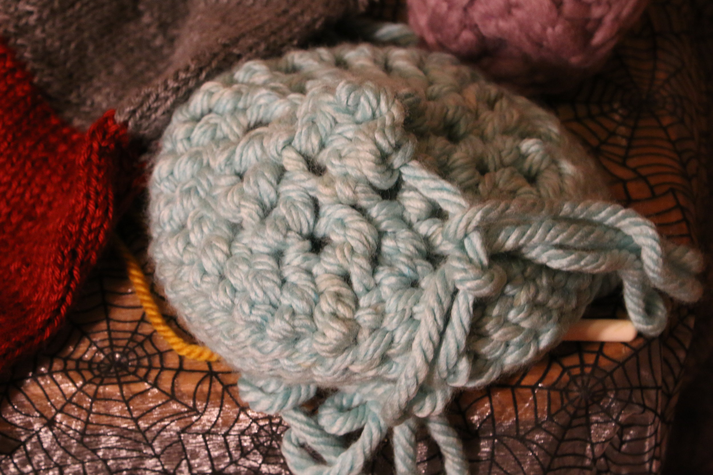 I’ve stitched everything, leaving a spot to stuff the pillow, I’m going to put on felt portholes and gun stations, but other than that its pretty much almost done. I’m also working on a crochet hat in a really thick teal wool, winter may have snuck up on me, but I’’ll be damned if I don’t whip up something simple to combat it.