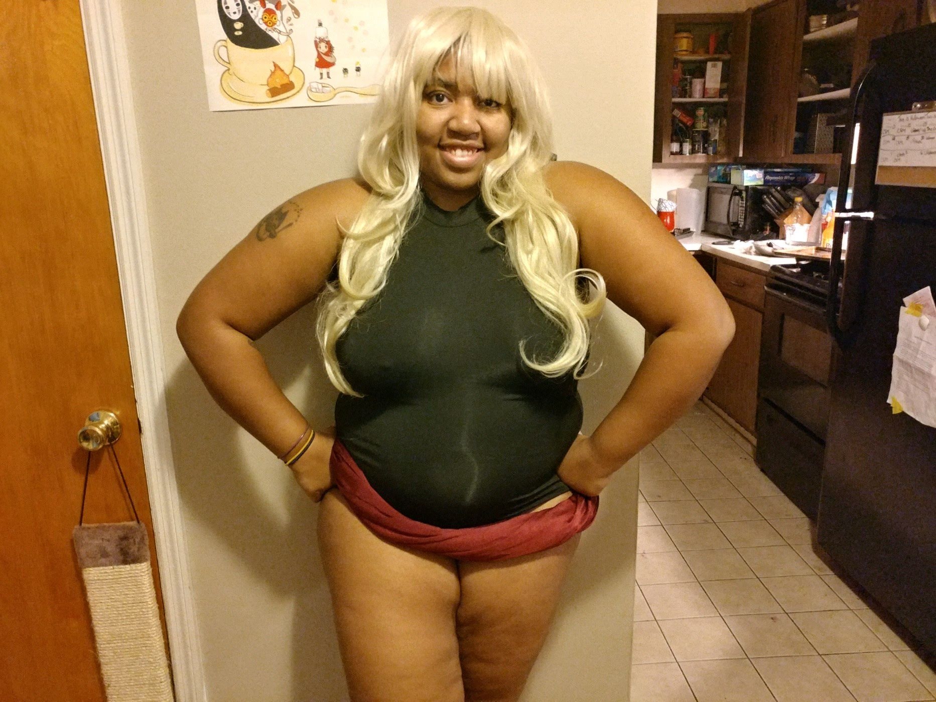 This costume consists of the same wig for She-Ra, A Red sash I had laying around the house, and a halter body suit I got from Amazon.