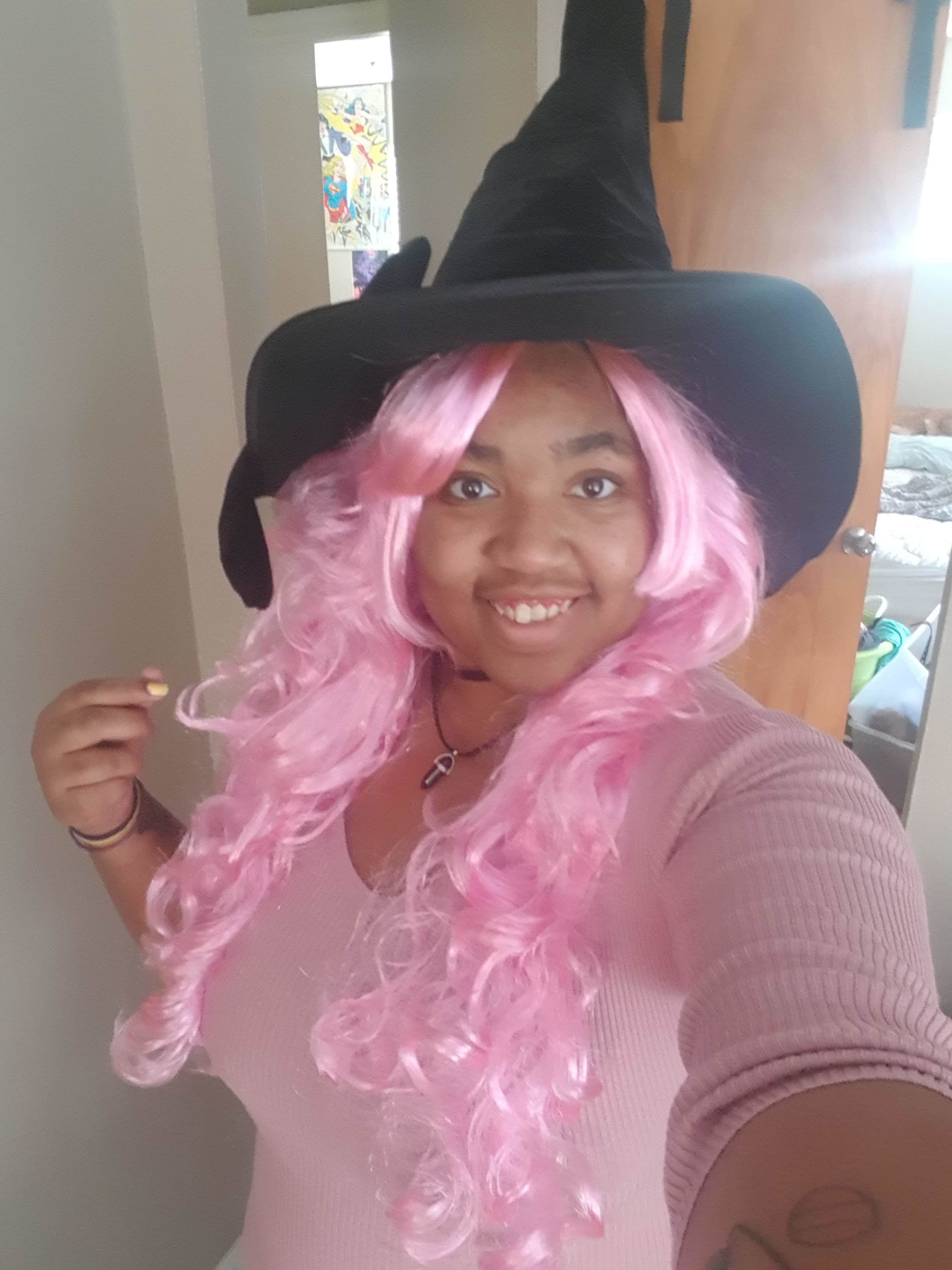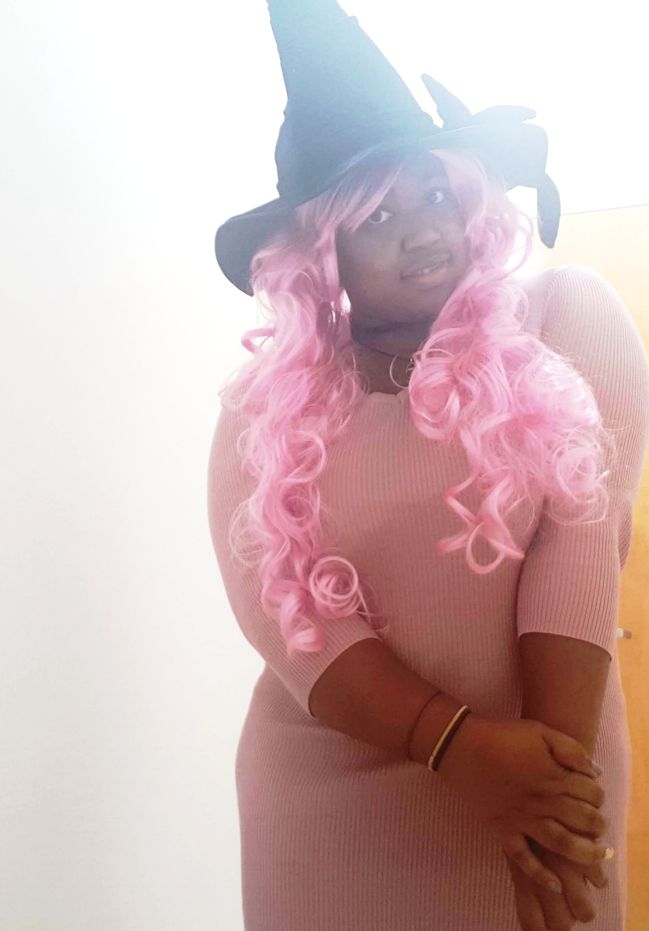 Thursday, started Halloween week at my jobs, so I started to put together even more costumes, and because I was working, time kind of got away from me. I wasn’t necessarily sure what I could get away with at my job because its business casual. So i played it safe and wore a pink dress, and dressed up as a witch!