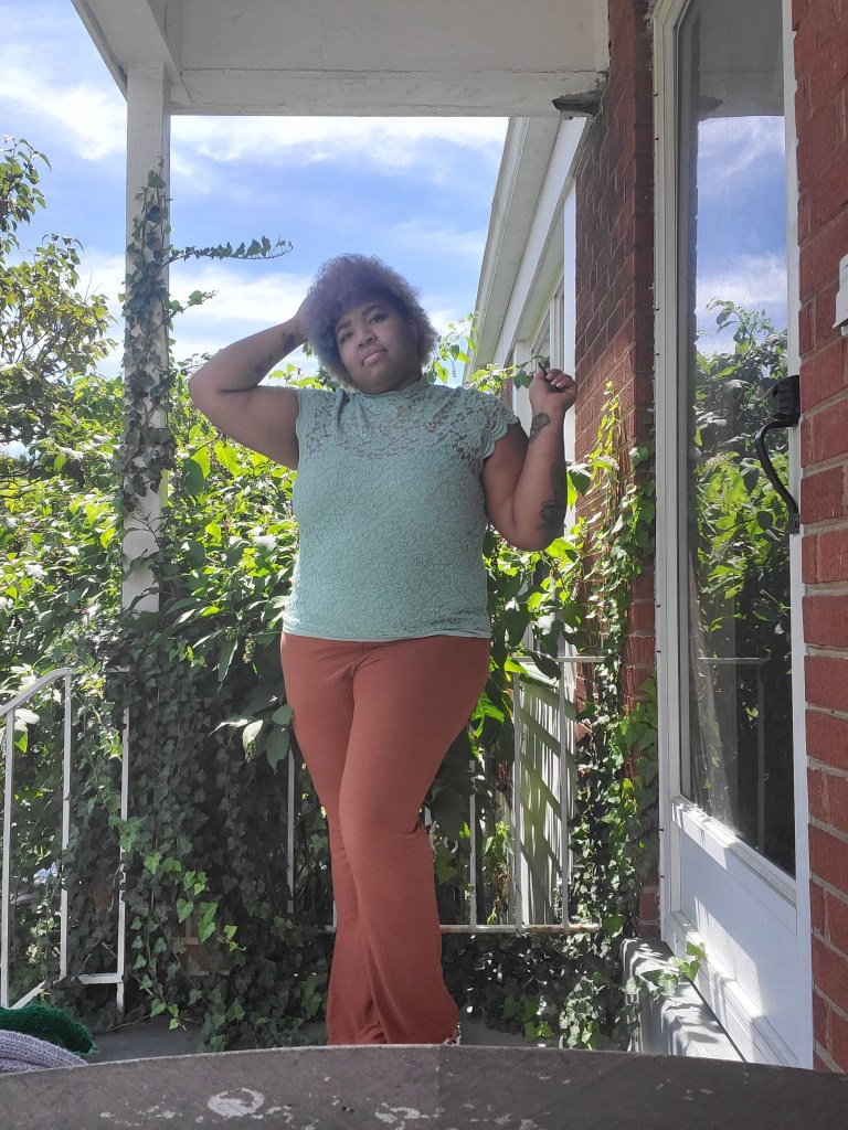 So I want to start with Shaggy, as his was actually accidental and helped give me the idea for this! So to put Shaggy together, I used a light lime Green Lace top and tan flared pants I got from Walmart. I think it looks a lot like the character, but still keeps the feminine flair I like to enjoy in my wardrobe.