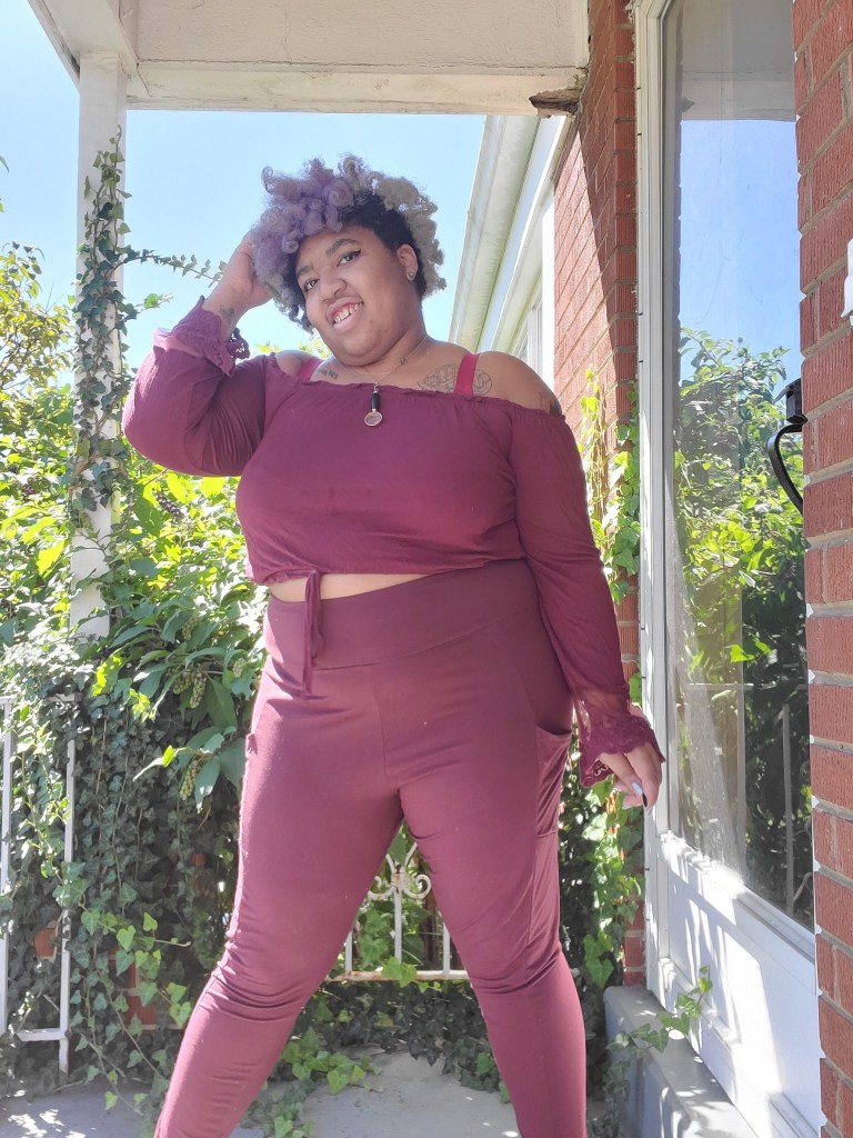 Scooby Doo finishes out my inspired series. I don’t wear a lot of brown, so I tried to get as close as possible with a maroon outfit. I thought I would mix a feminine top, and a comfy pair of joggers. With Scooby always on the go, I thought the joggers would be perfect, especially since they have pockets! The bottoms and the top were both from Rue 21.