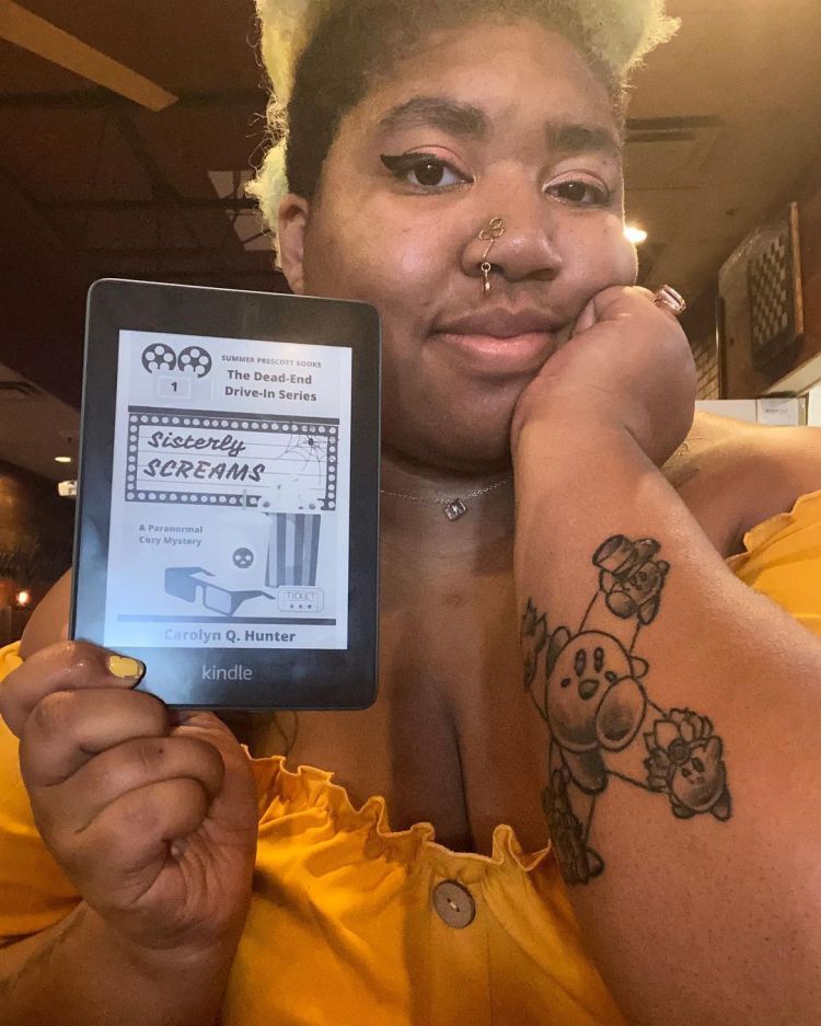 First completed book of the month! Sisterly screams by Carolyn Q. Hunter. Book 1 of the Dead End Drive In Series! Read in one day and in mostly one sitting! 5✨✨💫 I absolutely loved this cozy murder mystery with a supernatural twist. I’m so excited to start the 2nd one and learn more about the sisters and their retro horror movie drive in. Which is actually one of my dream businesses.#bookish #cozy #cozymystery #mystery #louisiana