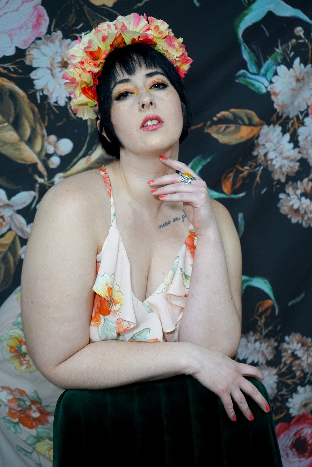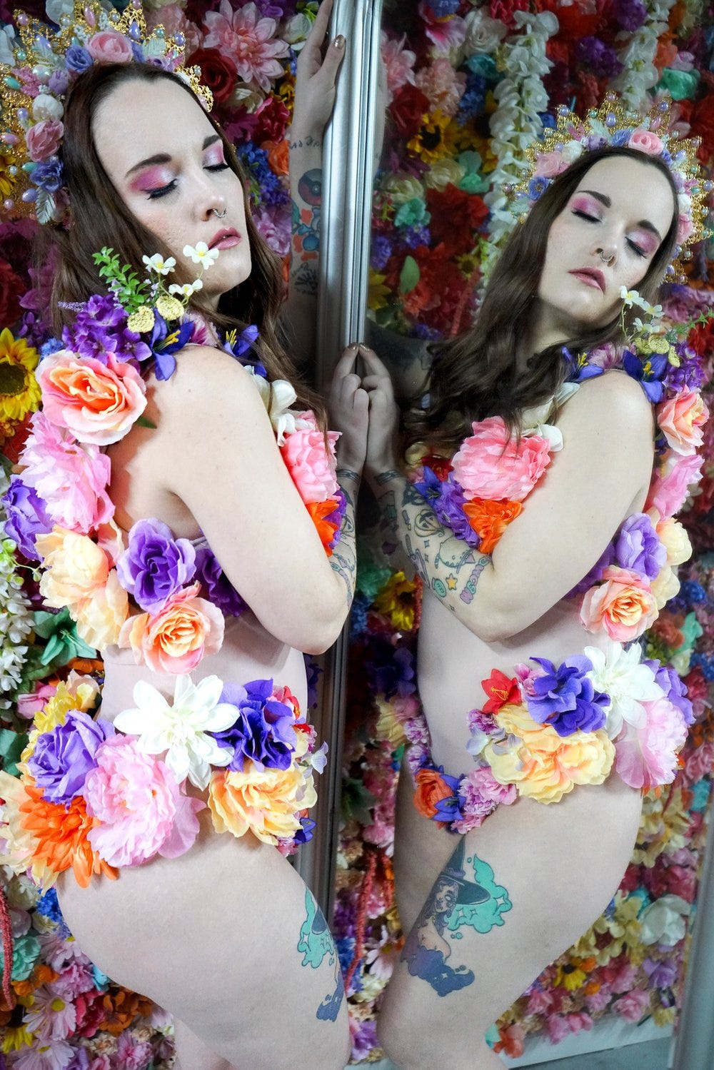 There were 5 different floral adjacent sets to photograph and after about 10 minutes each model rotated so we could try every set with different models.
